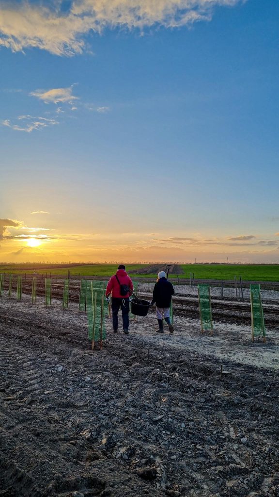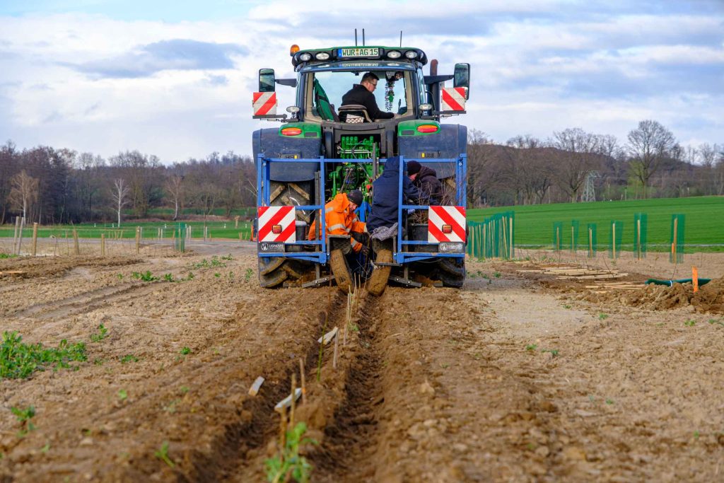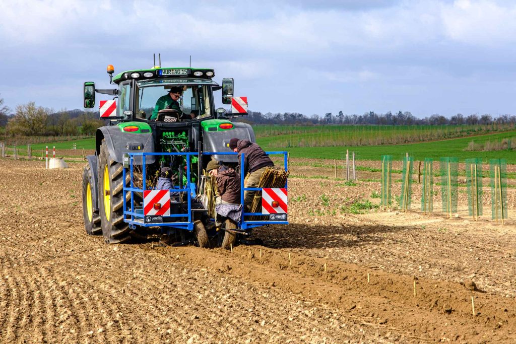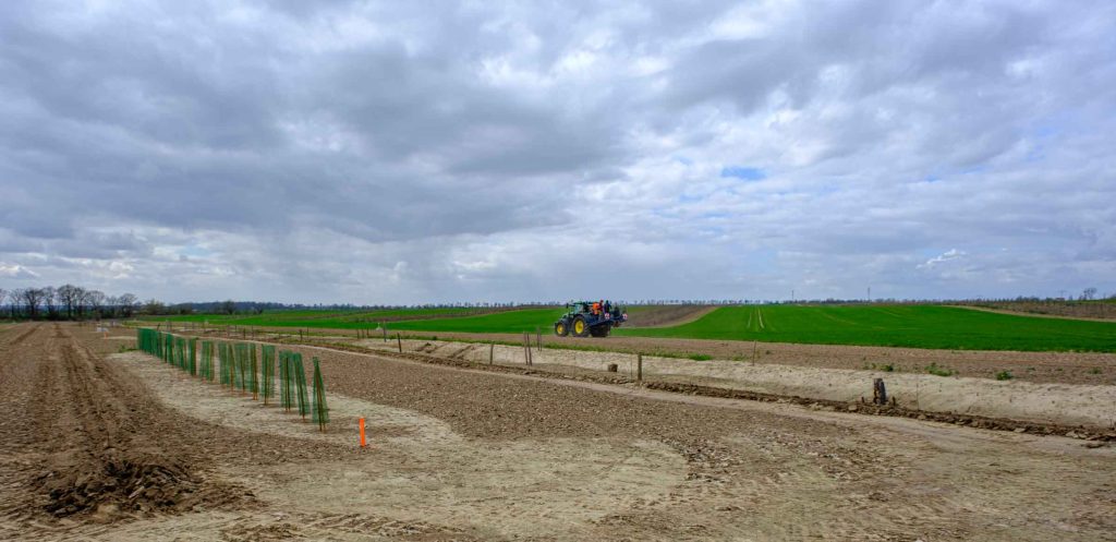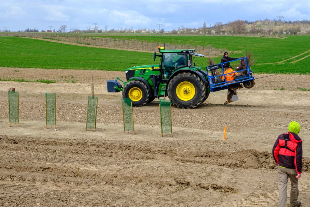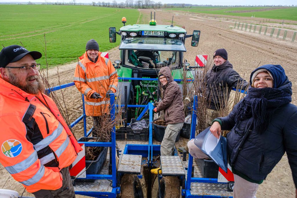 Es wurden insgesamt 17 verschiedene Edellaubgehölze entsprechend der potenziell natürlichen Vegetation (darunter u.a. Schwarz-Erle, Traubenkirsche, Flatter-Ulme und Berg-Ahorn), gemeinsam mit drei verschiedenen Hybrid-Pappelsorten in unterschiedlichen Pflanzformationen gepflanzt. Also insgesamt 2.380 Gehölze in 20 verschieden Arten und Sorten, die uns nun in der Forschung Aufschluss über deren Wuchsverhalten und Vergesellschaftung bringen werden.
