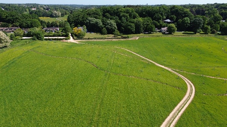 In spring 2025, alley cropping systems were established on three arable fields, which are intended to contribute to reduced wind speed, improved soil protection, water retention and yield stabilisation. These agroforestry systems consist mainly of poplars, which will be used in future to supply the farm with heat. One of the tree strips also contains various climate-adapted tree species for the production of valuable timber, which is intended for long-term material use. This new structure, which connects the adjacent forest edge with a patch of woodland in the agricultural landscape, is also intended to provide a special benefit for the biotope network.